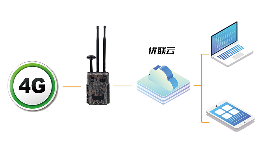優威4G-云平臺系統核心組件包括LTE 4G紅外相機終端、優聯云遠程控制管理云平臺、 優聯云遠程控制管理APP以及數據中心服務器。LTE 4G紅外相機終端采用全網通網絡 設計,零設置即可投入使用,具有超低待機功耗和自拍式成像功能,同時配備彈夾式 電池倉,方便用戶快速更換電池。